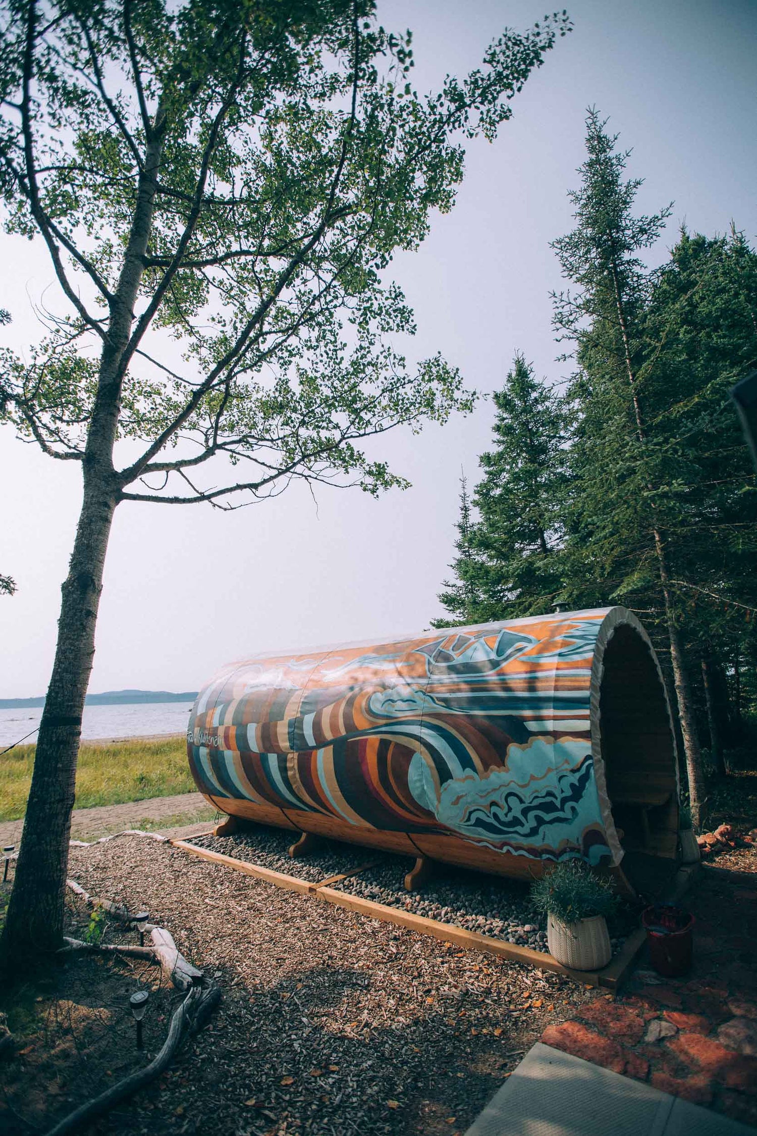 Book NowThis area is referred to as the Wilen Barrel because of the mural painted on the canvas cover from Thunder Bay artist Vik Wilen. This area is more open, providing lots of sunshine for a warmer stay.